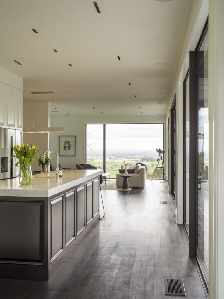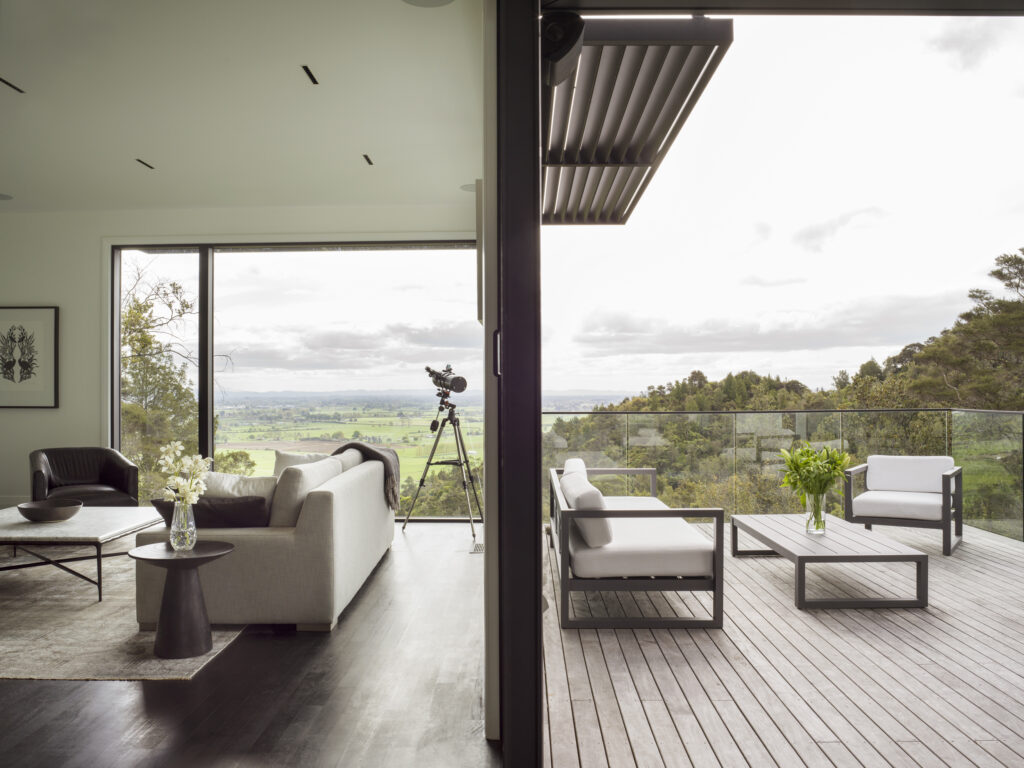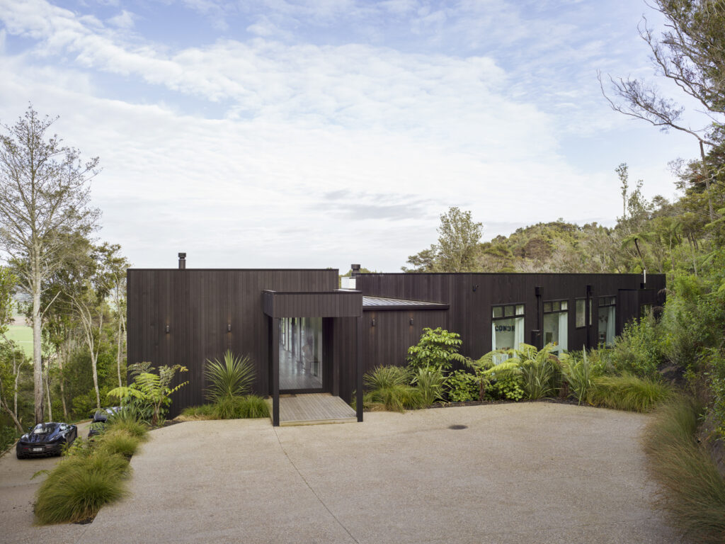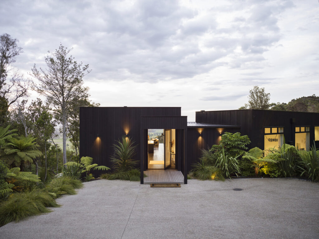 In 2013 we were approached to design a contemporary home on a steep bush-clad site in rural Cambridge NZ. Our brief was to design a home with open plan living for maximum solar gain and to capture the native NZ bush & Waikato farmlands.